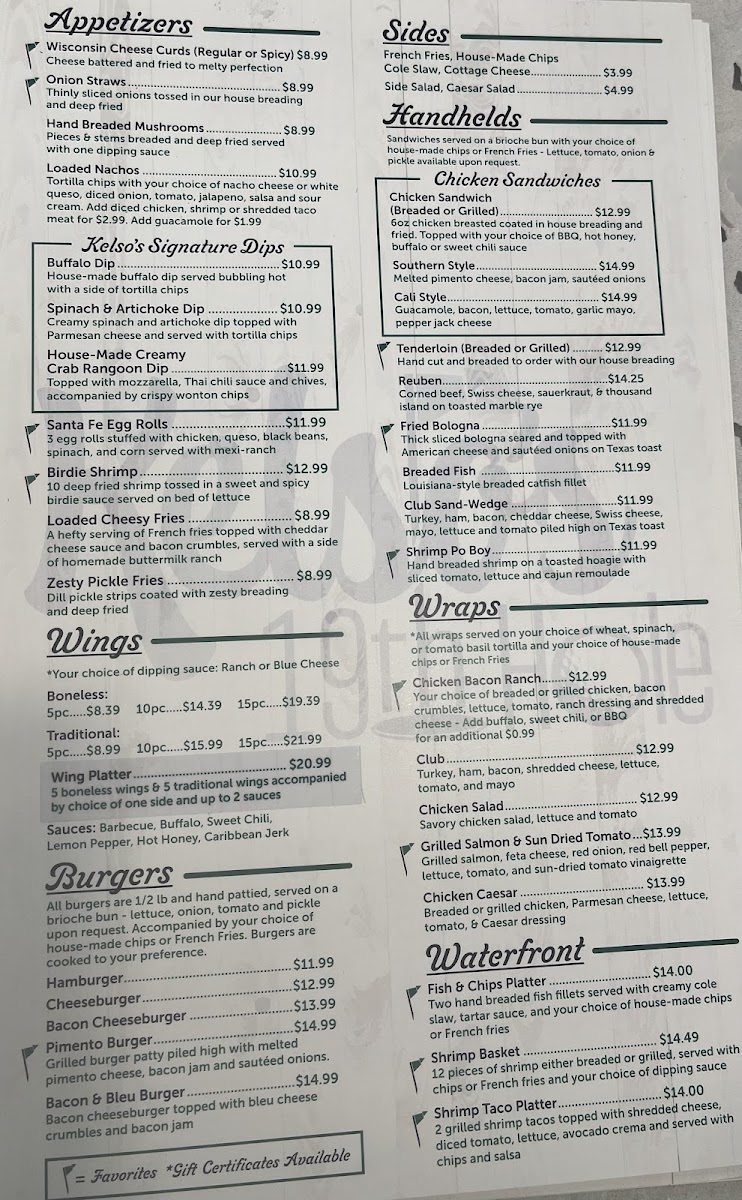 The menu at Kelso's 19th Hole offers a delightful variety of dishes that cater to different tastes, whether you're in the mood for a hearty meal or a quick snack. A standout option is the Loaded Large Pizza, which is packed with flavorful toppings and perfect for sharing. For those looking for something more classic, the Ham and Cheese Sub is a satisfying choice, delivering a delicious combination of savory ham and melted cheese. The Chicken Sandwich is another great option, offering a tender, juicy piece of chicken in a fresh bun, ideal for a quick and tasty meal.